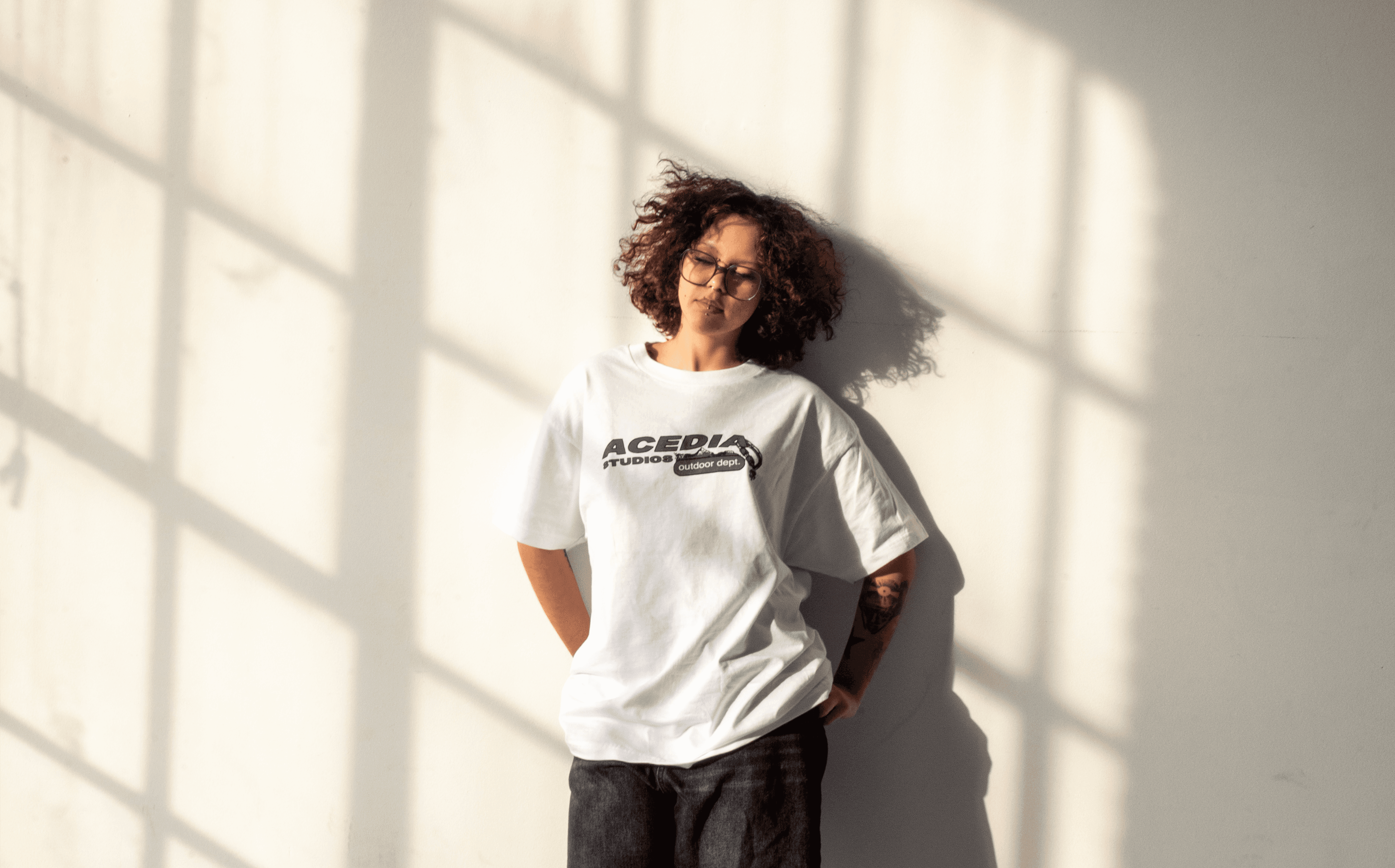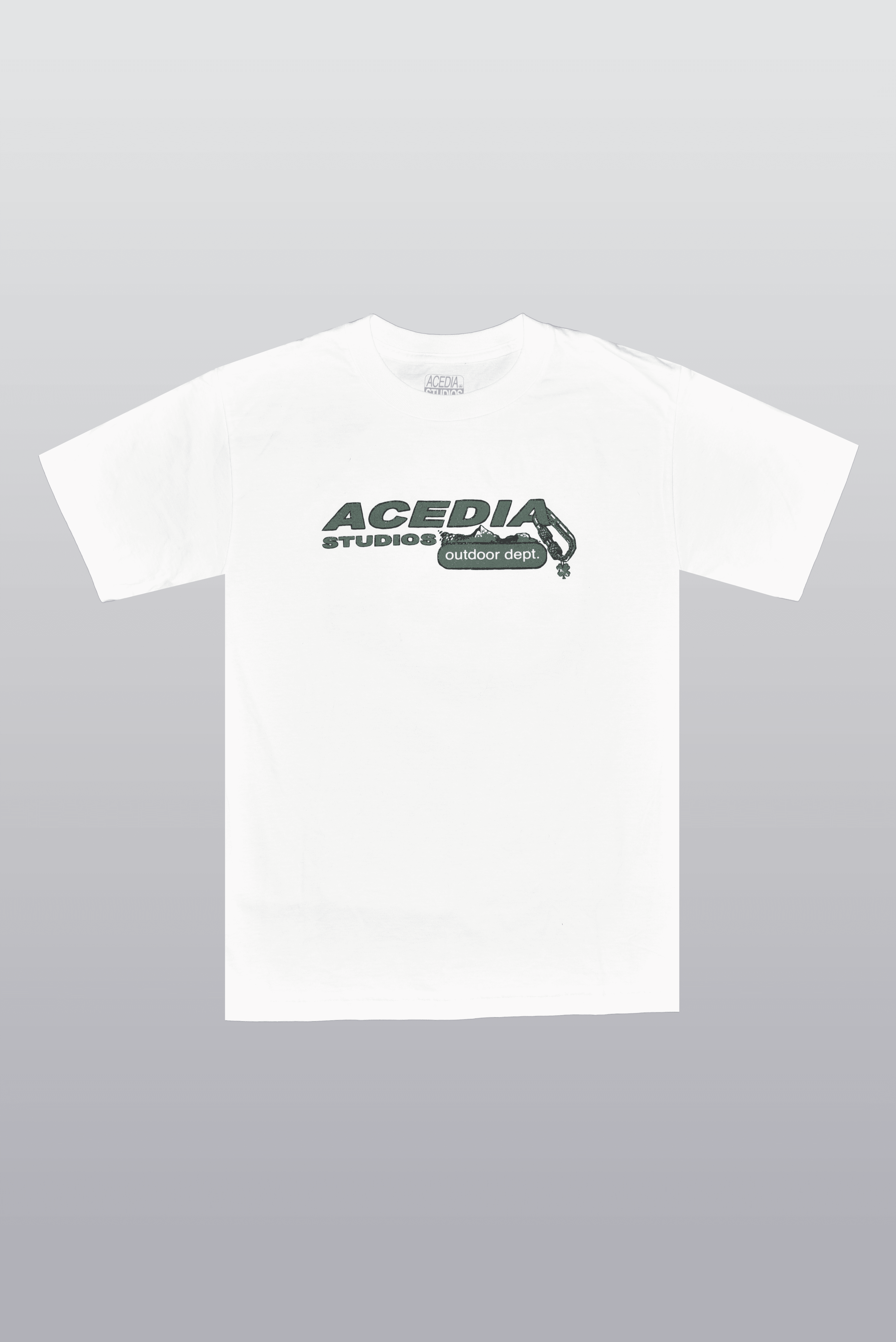 The great outdoors! Ode to a summer the Acedia team spent climbing. Printed on a roomier / softer blank than usual to be more climb friendly. Made in NYC, design by Acedia Studios, printing by LQQK Studios.